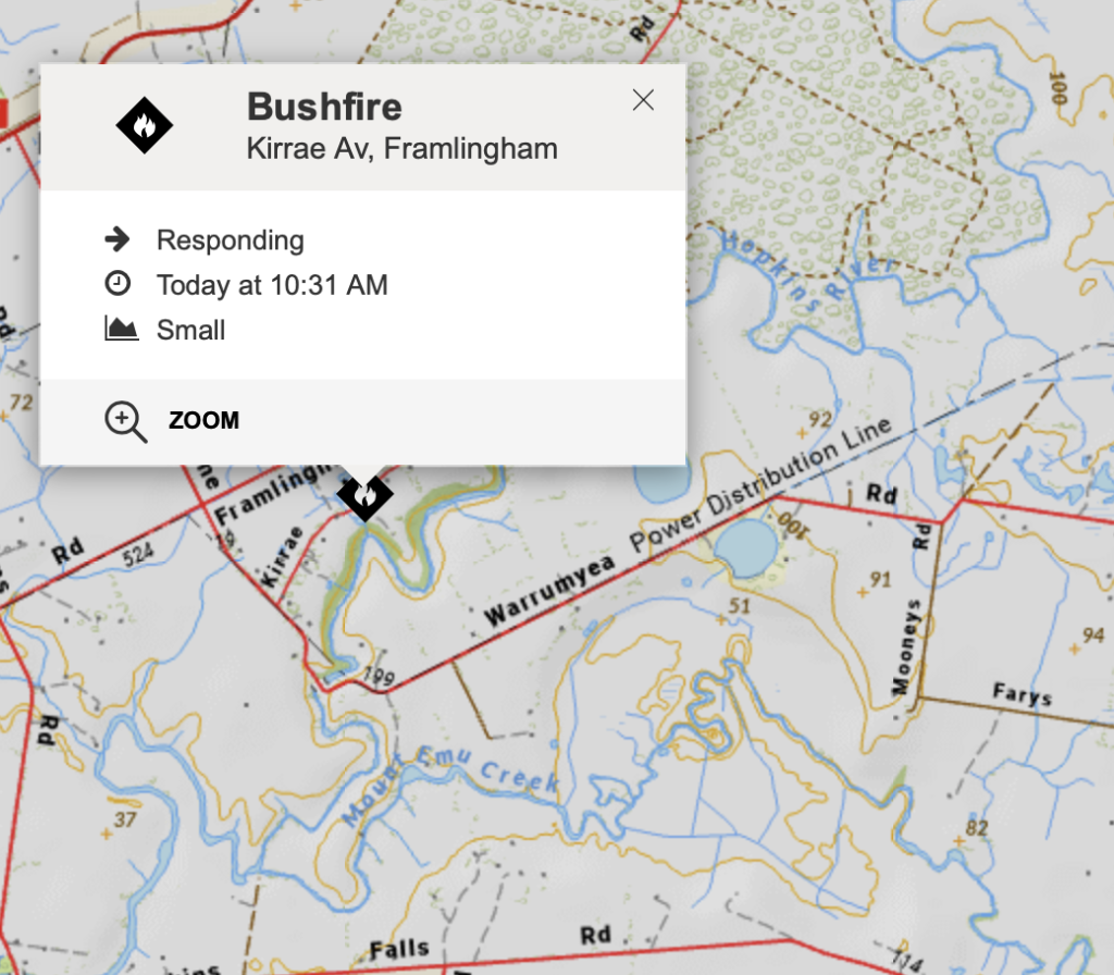 One of the more concerning fires of the morning was a bushfire that broke out in the Framlingham area.